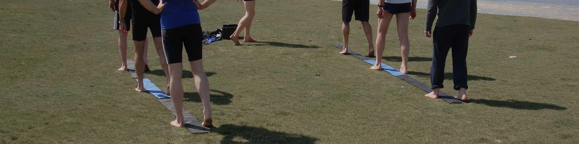 In this gait drill we experience a deeper sense of the centre of gravity by positioning a belt so that it catches the top of the hipbones. Then the belt-buckle will be approximately where the centre of gravity of your body lies that is 5 to 6 cm below the belly button. The great advantage of this configuration of elastic pull is that it will enable you to really slow down the Phase 4 of the natural stride in which the centre of gravity fractionally leads and goes ahead of the action of the legs and hip. The elastic is really helpful in the process of easing out of an ingrained patterns associated with a shod gate: that is the tendency to stick the leg out in front order to present the heel as the first point of contact. The elastic enables you to do it slowly enough for the brain to “nail” a new pattern.